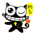 我是一只黑色的大眼猫,胸前有代表正能量的黄色箭头。以乐天派、百折不饶的个性,用阳光积极的表情,让你的沟通充满乐趣!